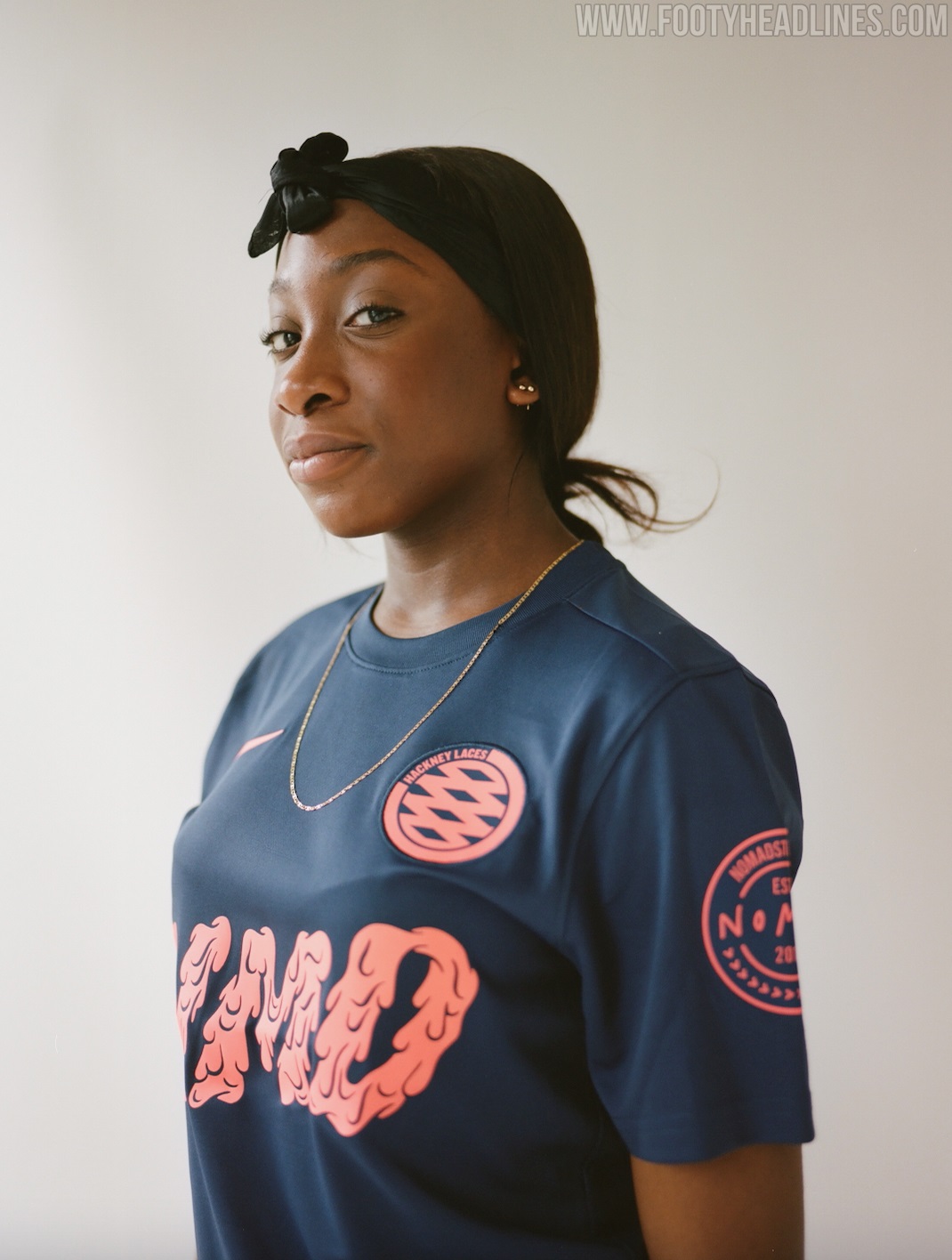 Nike combines the Hackney Laces 20-21 jersey with navy shorts and orange socks.