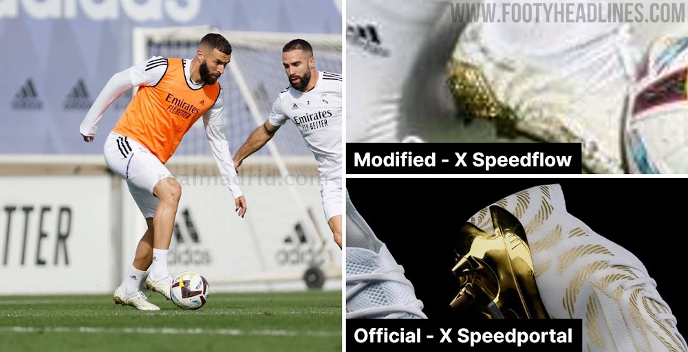 - Benzema's Custom Boots: Karim Benzema's custom Adidas Ballon d'Or boots are based on the older Adidas X Speedflow model, not the current Adidas X Speedportal.