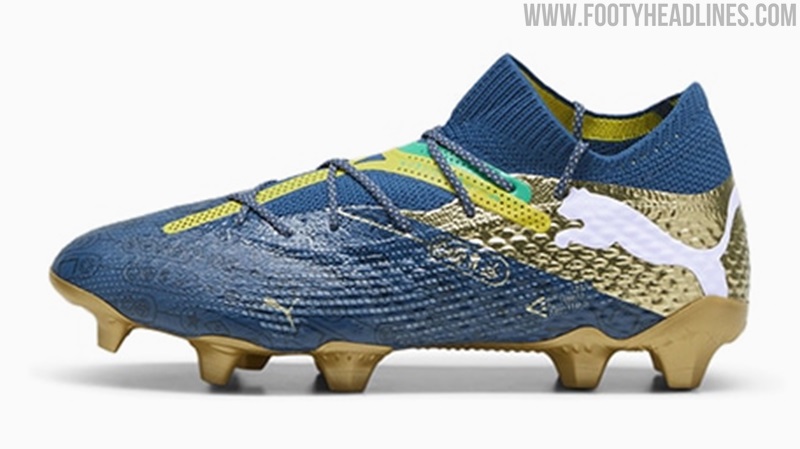 Les nouveaux crampons Puma Future 7 Neymar BNA arborent la couleur principale " Sailing Blue " associée à des détails jaunes et verts - symbolisant le drapeau brésilien.