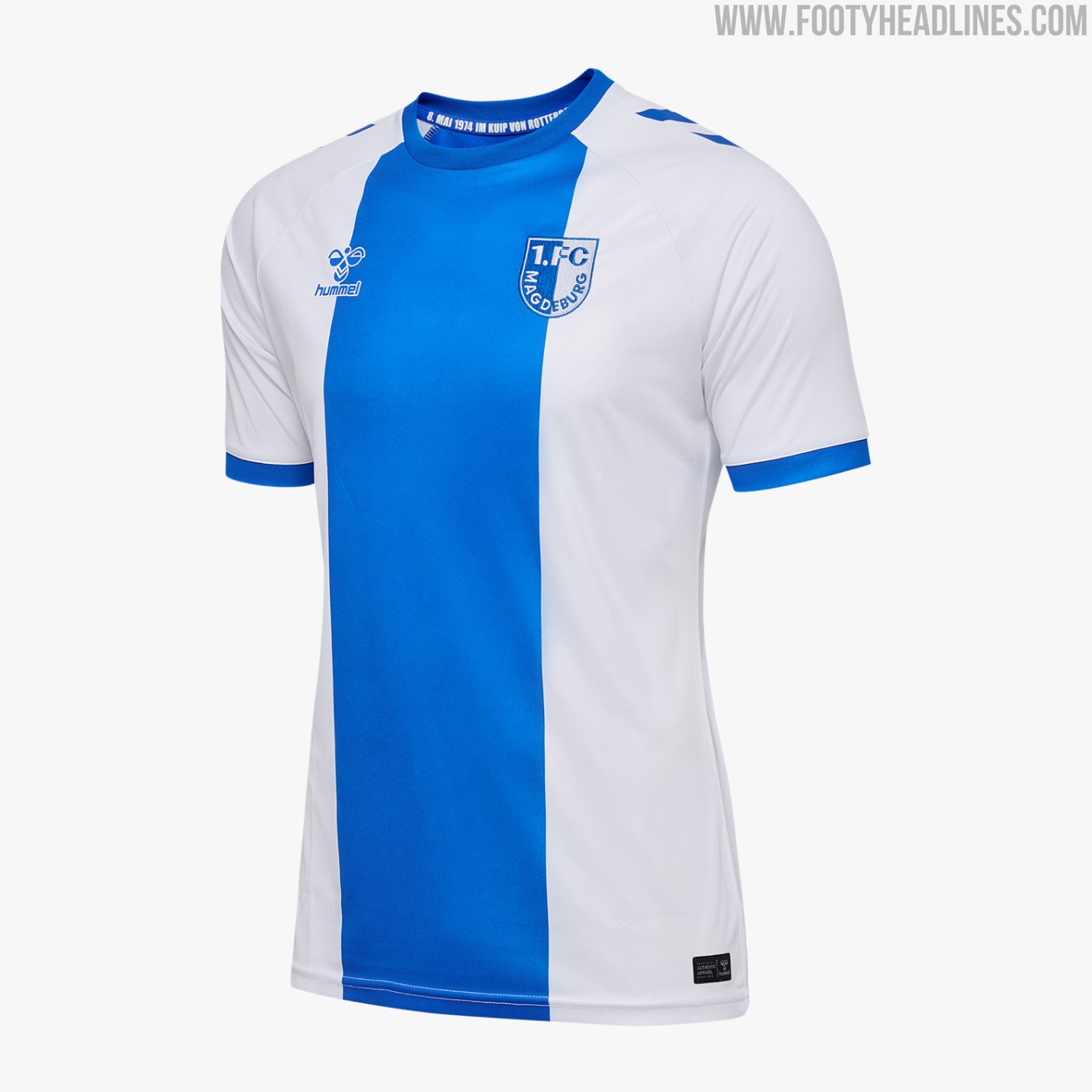 A camisola especial Hummel Magdeburg 2023-2024 reproduz o estilo da camisa de 1974. A faixa central azul brilha em azul FCM sobre um fundo branco. Inspirada na forma como os números foram aplicados há 50 anos, uma caixa azul adorna as costas. A frase "8 de maio de 1974 no Kuip de Roterdão" pode ser vista na fita do pescoço, com as palavras "1. FC Magdeburg - AC Milan 2:0" por baixo.