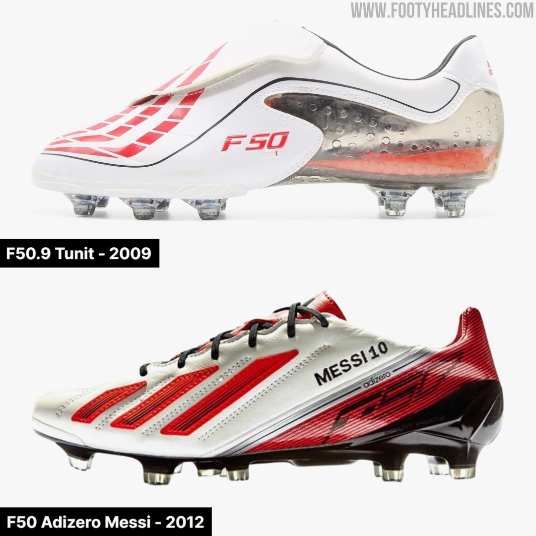 A primeira chuteira da próxima geração F50 Messi, chamada 'Messi Prestig10', apresenta um design inspirado na F50.9 Tunit de 2009.